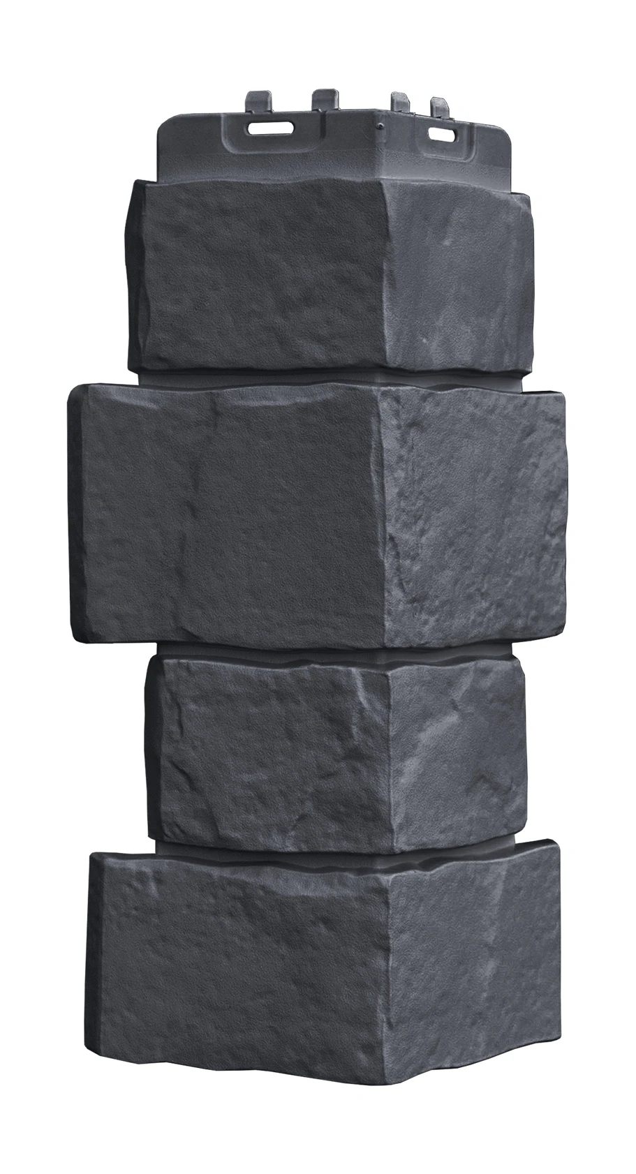 Угол внешний GRAND LINE Classic Крупный камень графит 390*170мм - универсальный фасадный материал, который достоверно имитирует старинную кладку из тесаного камня. За счёт своей прочности панели можно использовать как на цокольной части дома, так на всей области фасада.