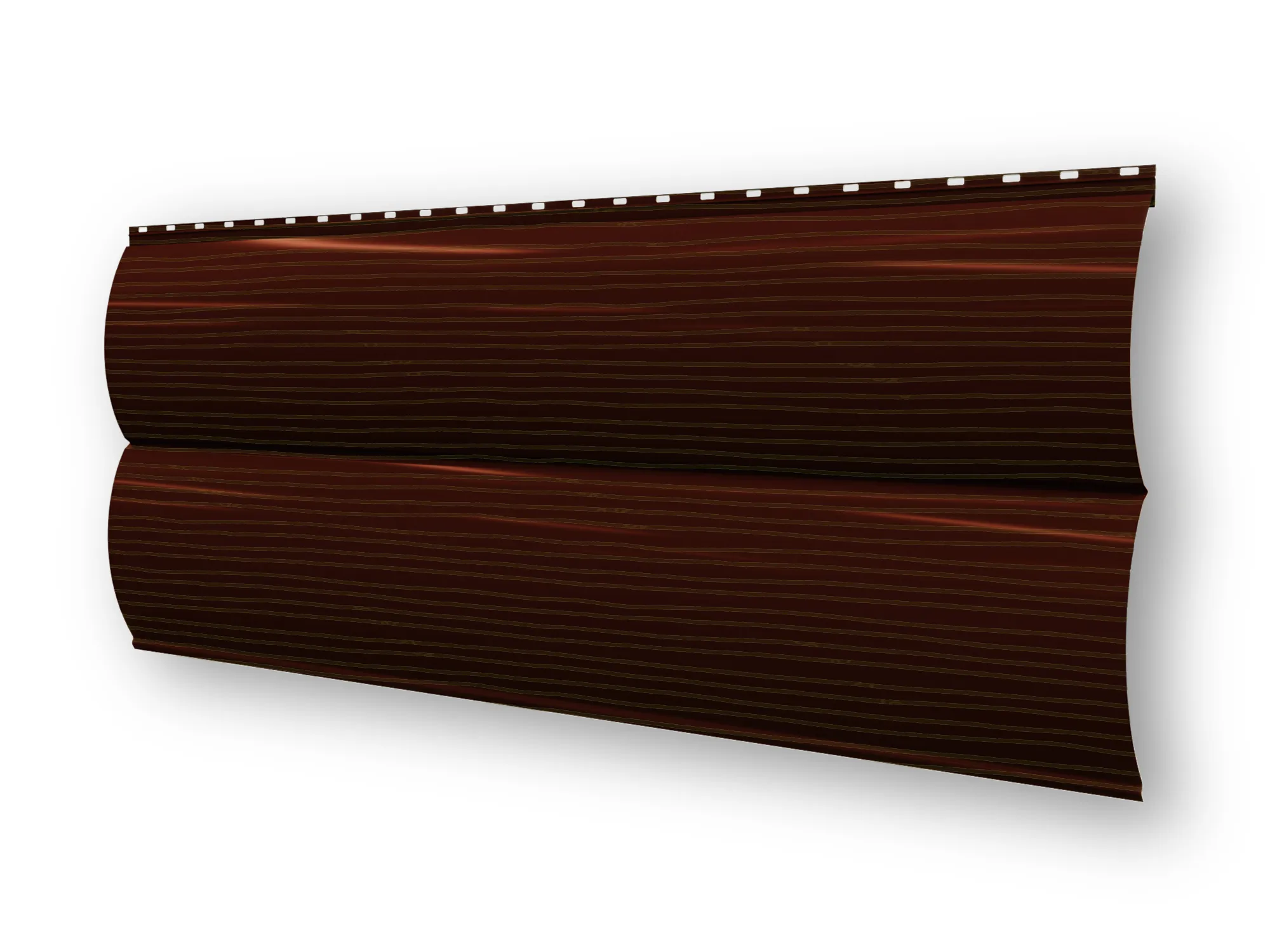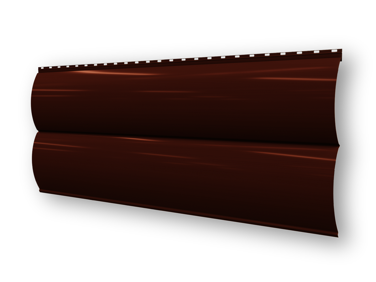 Сайдинг металлический Двойное бревно 388 (354) (0,65/8017 шоколад) - это производное классического металлического сайдинга, которое имеет оригинальный вид, повторяющий форму и фактуру калиброванного бревна. Используется для облицовки фасадов зданий и при возведении заборов. Фасад, на котором смонтировано "двойное бревно", смотрится как стена, выстроенная из оцилиндрованных бревен. Такой металлосайдинг отличается уникальными эксплуатационными свойствами, быстротой сборки, длительными сроками эксплуатации до полувека.