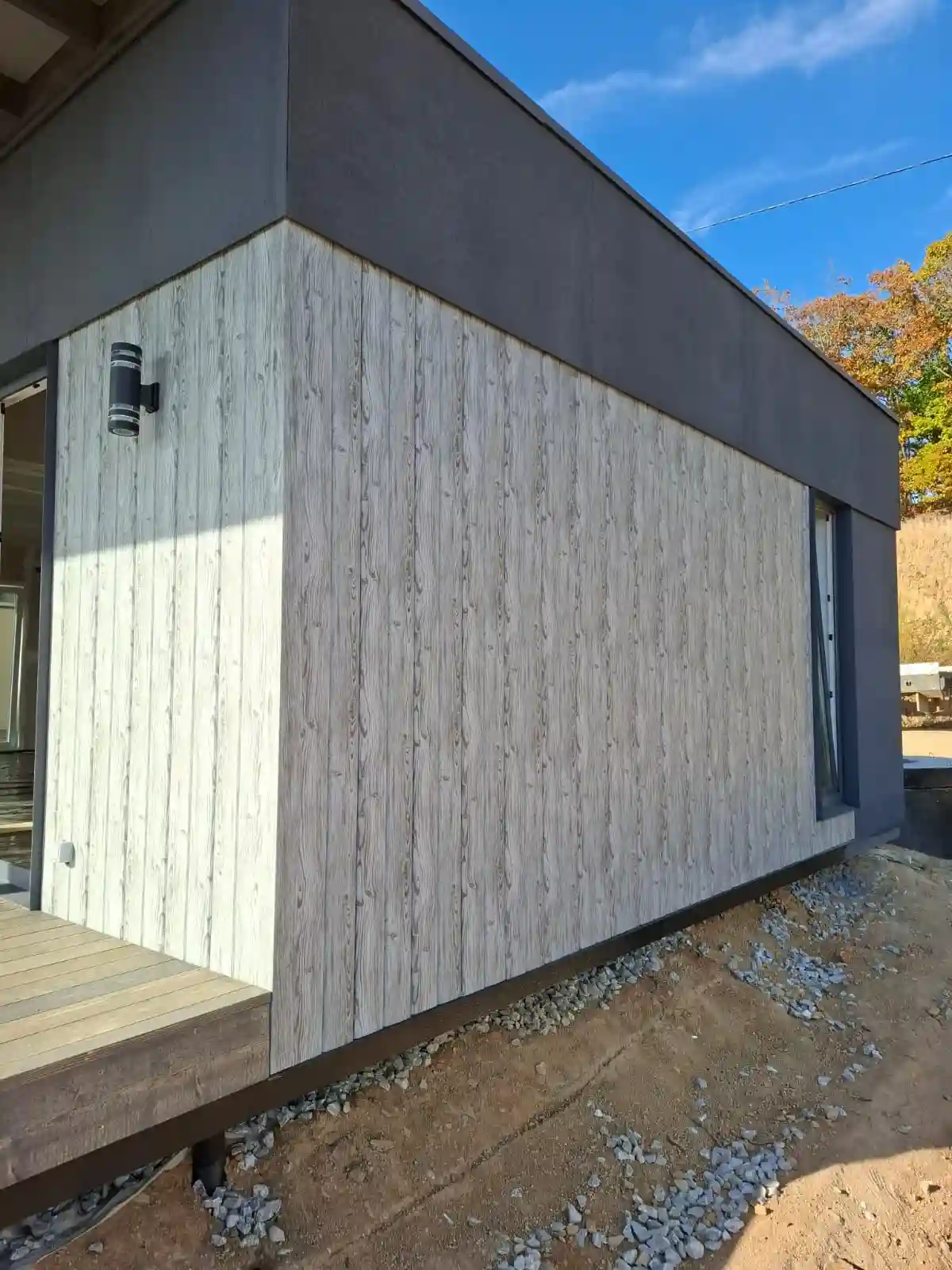 Монтаж металлосайдинга с соблюдением технологических норм позволяет создать ошеломляющий эффект калиброванного бруса и продлевает срок службы загородного дома. К тому же, материал не требует окраски или обработки в течении всего срока эксплуатации в отличае от деревянных аналогов.