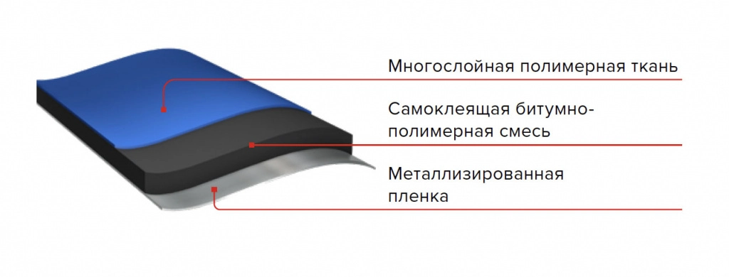 - 90% модифицированного СБС битума в составе материала обеспечивает максимальную герметичность в местах механических креплений и самозалечивание подкладочного ковра при возникновении на нем повреждений, будь то порезы или проколы.