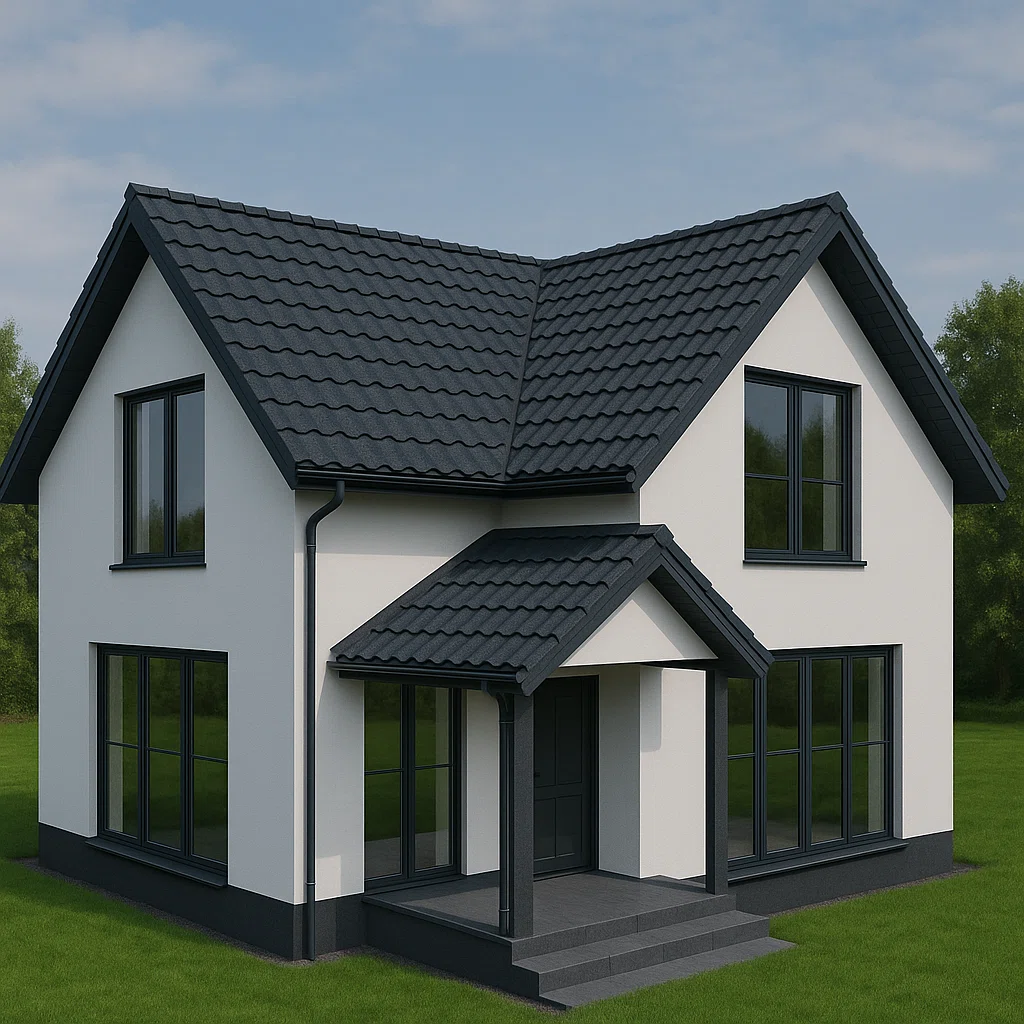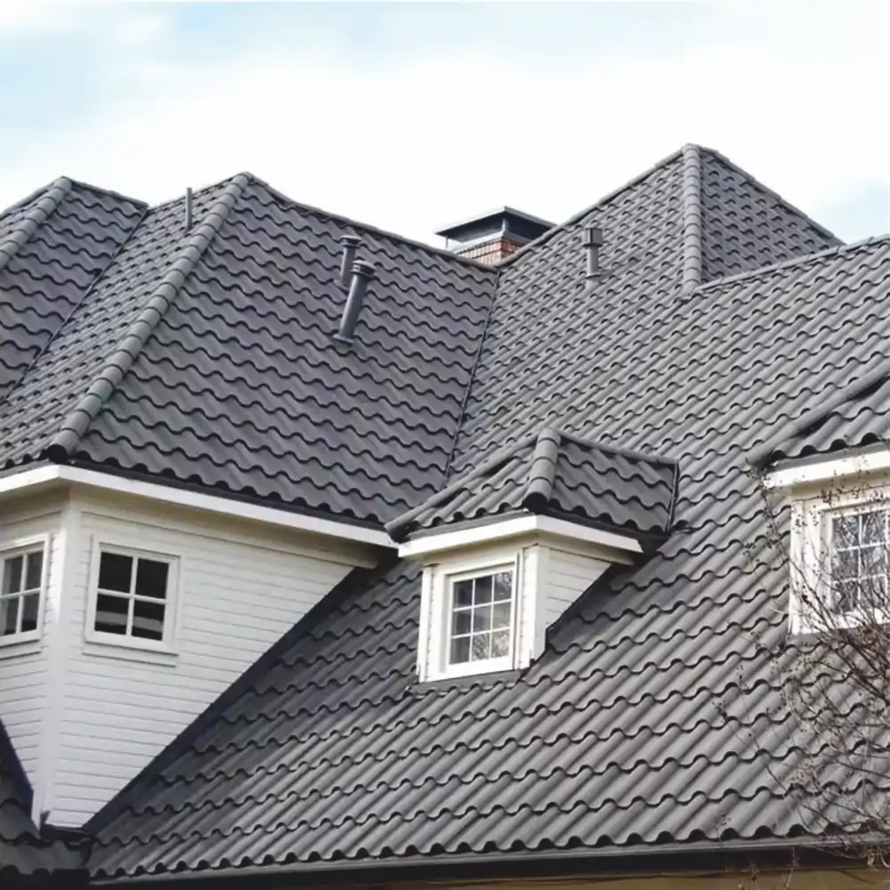 - Долговечность. Алюмоцинковое покрытие 120 г/м² обеспечивает срок службы черепицы до 50 лет, в отличие от 30 лет у металлической и мягкой черепицы