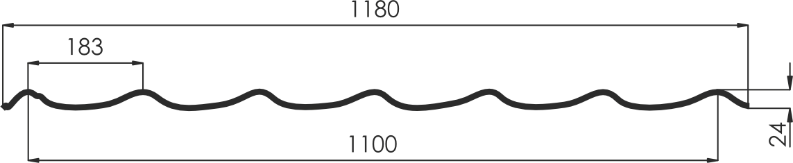 - рабочая ширина листа (вычитается нахлест соседних листов при монтаже) 1100 мм,