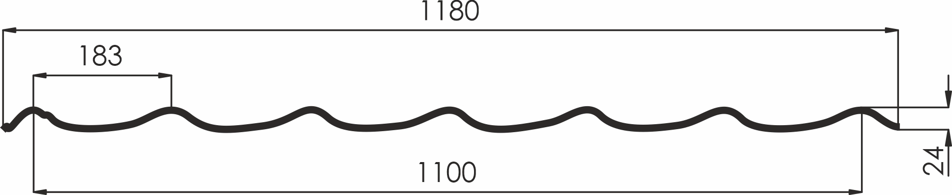 - рабочая ширина листа (вычитается нахлест соседних листов при монтаже) 1100 мм,