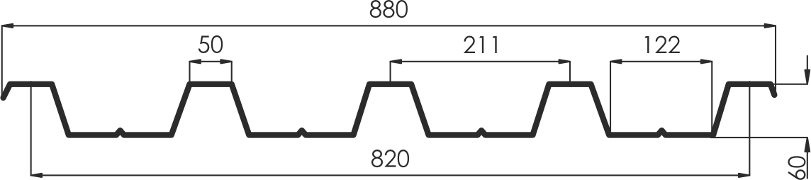 - рабочая ширина листа (вычитается нахлест соседних листов при монтаже) 820 мм