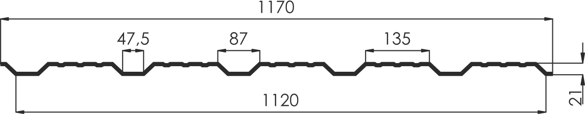 Профлист НС-21 Каскад 1170 (1120) (0,45/9005 черный) - универсальный профилированный лист, который отлично подходит для строительства стен, заборов и кровли. Высота волны 21 мм. и продольные ребра жесткости (3шт) на каждой волне, делают этот профиль очень стойким к снеговым нагрузкам.