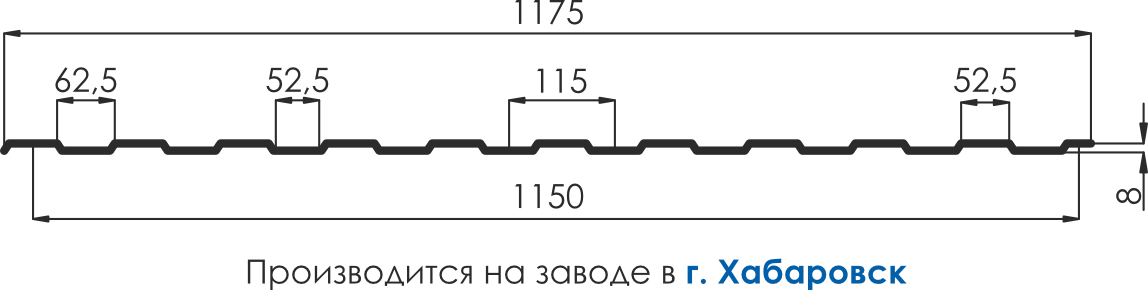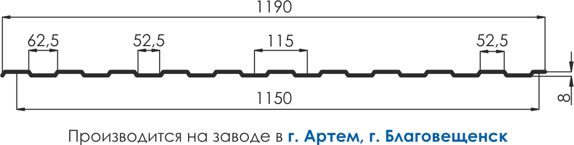 - Рабочая ширина (вычитается нахлест листов при монтаже) 1150 мм