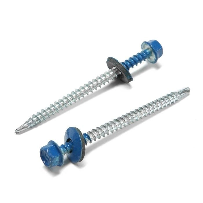 Саморез кровельный 4,8х70мм RAL5005 синий применяется для крепления металлочерепицы и профнастила к деревянным и металлическим кровельным конструкциям.