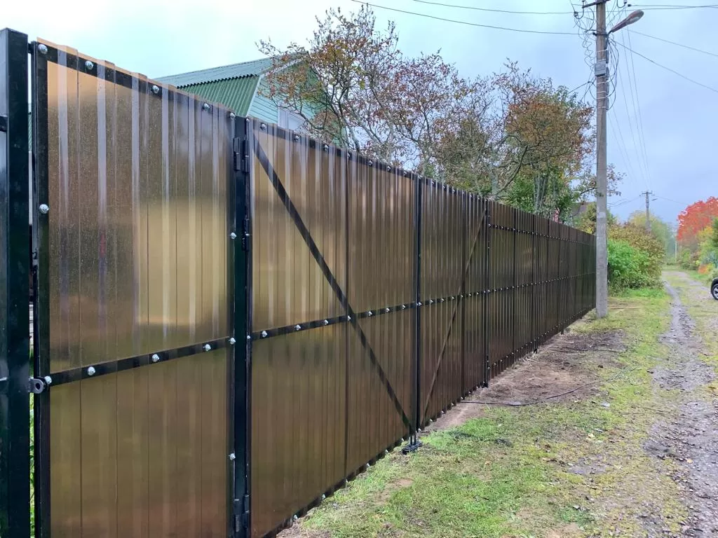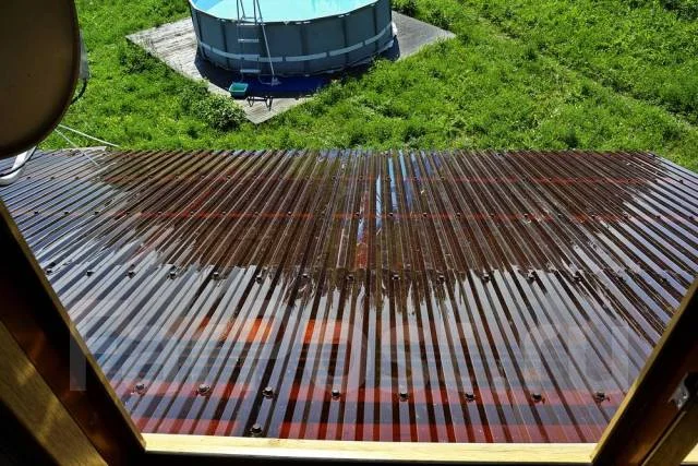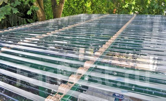 - качественный профилированный поликарбонат имеет 10-ти летнюю гарантию и обладает высокой износоустойчивостью, в течении гарантийного срока службы не желтеет и не мутнеет.