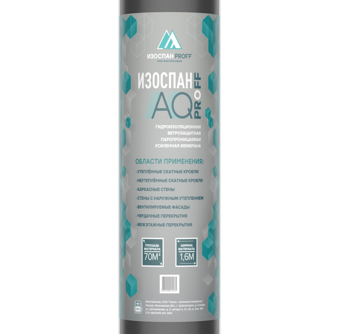 Мембрана ИЗОСПАН AQ PROFF супердиффузионная гидро-ветрозащитная (70 кв.м.) - материал, выполненный из полимерной микропористой мембраны, усиленной с двух сторон полипропиленовым нетканым полотном.