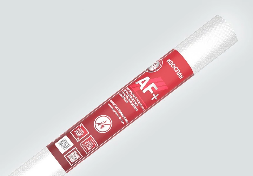 Материал Изоспан AF+ создан специально для применения в системах вентилируемых фасадов. Изоспан AF+ обладает водоотталкивающими свойствами, необходимыми для защиты утеплителя и других внутренних элементов конструкций стен от атмосферных осадков во время монтажа и эксплуатации НФС, при этом является паропроницаемым материалом, поэтому не препятствует выходу водяных паров из утеплителя в вентилируемый зазор. Изоспан AF+ препятствует конвективному движению воздуха через теплоизоляцию, снижая теплопотери. Очень высокая прочность материала способствует устойчивости к механическим нагрузкам на этапе монтажа и в процессе эксплуатации.