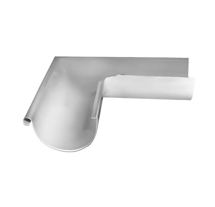 Угол желоба внешний GRAND LINE PE металл RAL 9003 сигнально белый 125 мм 90 гр серии Optima 125/90 используется для изменения направления потока воды, монтируются на внешних или внутренних (в зависимости от модели) углах кровли. Выполнен бесшовным способом (глубокой вытяжкой металла), что обеспечивает жесткость, эстетичность, герметичность и отличную гидродинамику.