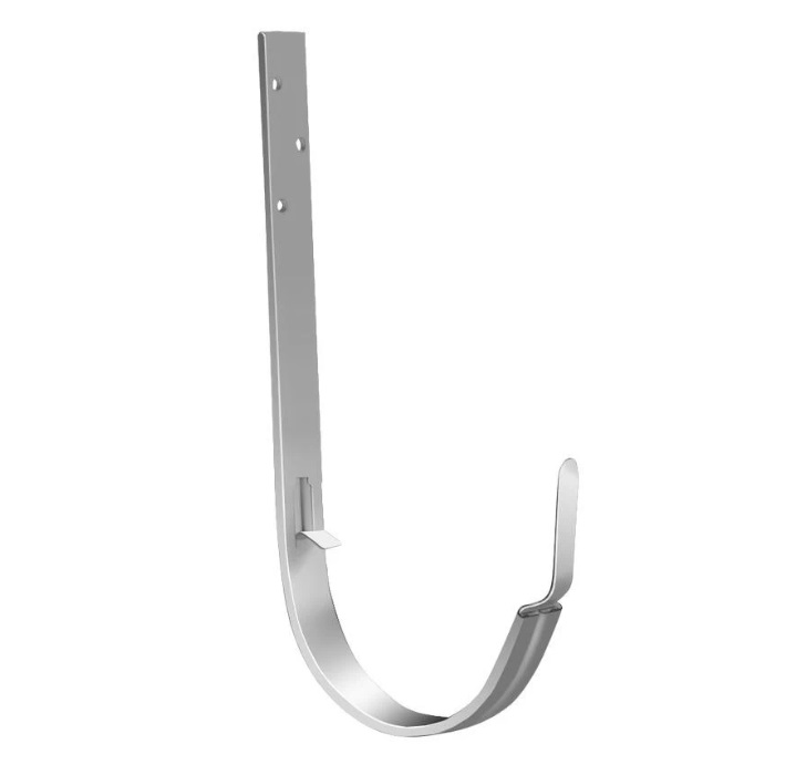 - служит для подвеса желоба на стропила, устанавливается до монтажа кровельного материала (длинный крюк).
